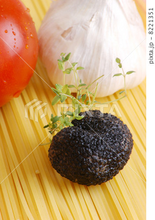 organic summer truffle with spaghetti garlic and tomato