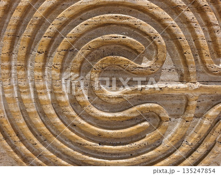 design emphasizing textured grooves and symmetrical pattern for meditative and navigational purposes