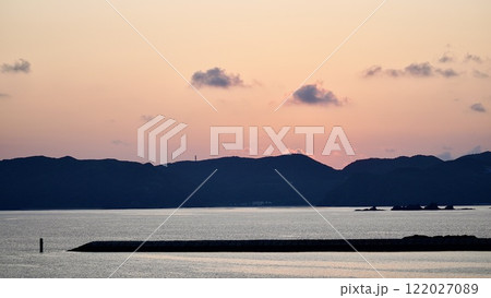 沖縄県座間味村阿嘉島から見た渡嘉敷島の日の出
