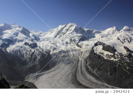 ゴルナーグラードから ゴルナー氷河越しのペンニネアルプスの山々 スイス ツェルマット