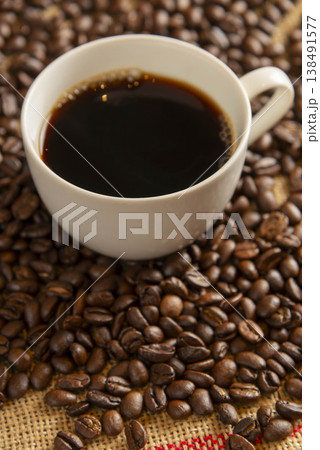 コーヒーと豆のテーブルフォト