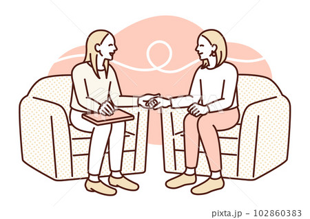 心理カウンセラーのおかげで具合が良くなった女性のイラスト素材。