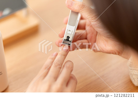 ビューティーイメージ 部屋でネイルのお手入れをする女性