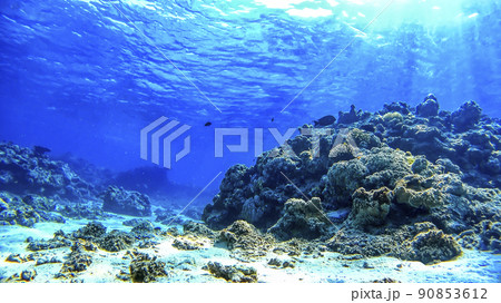 沖縄 阿嘉島のニシハマビーチのサンゴ礁 水中撮影