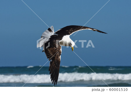 Kelp Gull In Flight By The Sea (Larus dominicanus)