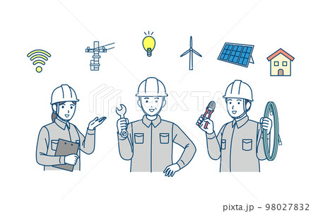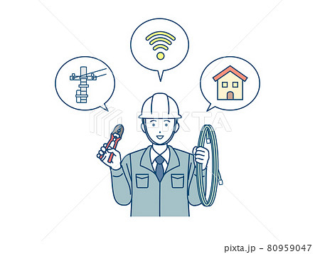 インターネット開通工事 立ち合い 説明 電気工事士 作業着を着た男性 イラスト素材