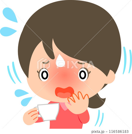 飲み物でむせて苦しんでいる女性
