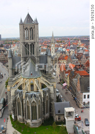 世界遺産ゲントの鐘楼と大聖堂と町並み ベルギー