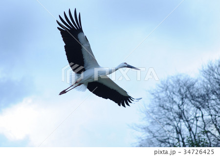 大空を羽ばたくコウノトリ