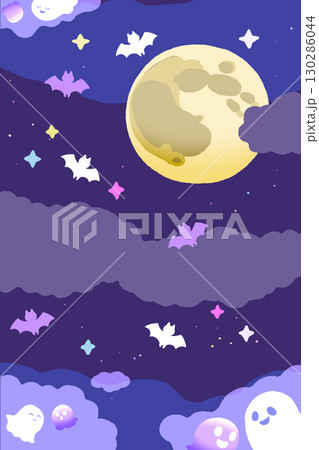 ハロウィン背景、縦、紫、かわいい、三日月