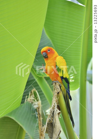 The sun parakeet beautiful colours of yellow, orange and red also known as the sun conure in SA