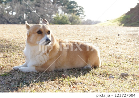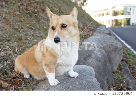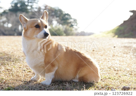 お座りするコーギー