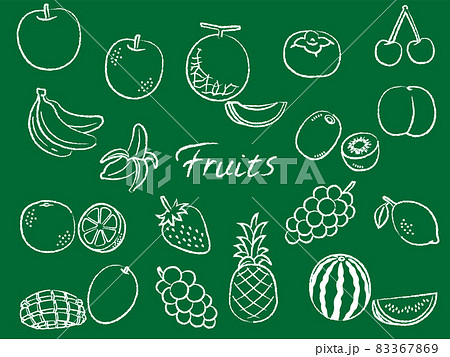果物 フルーツ 黒板にチョークの線 セット イラスト