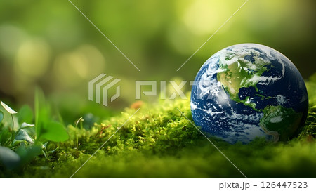 World Environment Day, planet Earth lies on green soft grass, ecology, care for nature and sustainable development
