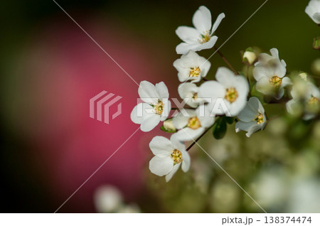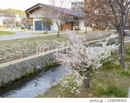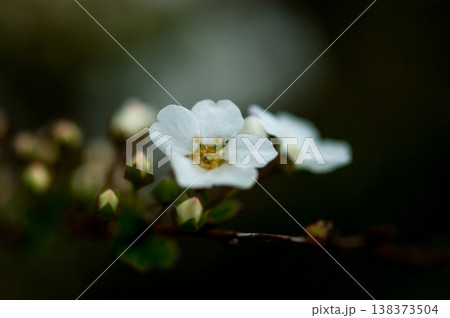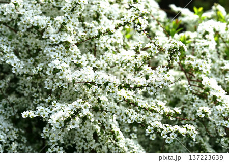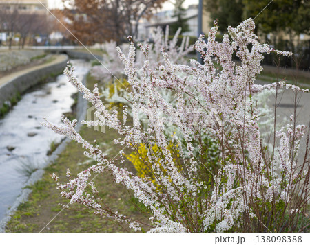 春の木の花:ユキヤナギ:満開状態:白い小さな花:山田池公園