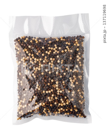 Black and white peppercorns in vacuum sealed bag
