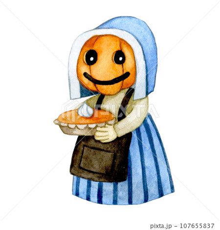 cute drawing for halloween. character with pumpkin head and pumpkin pie. vintage fairy drawing.