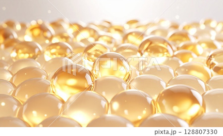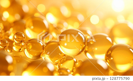 黄金のオイルバブル マクロ接写/高級スキンケアの背景素材