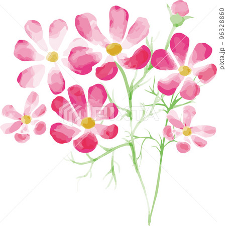 [ ベクター ] 手描きのコスモスイラストセット / 線画 背景単色