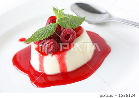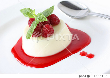 パンナコッタ、ラズベリーソース添え