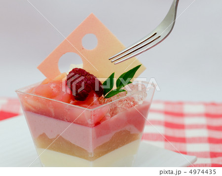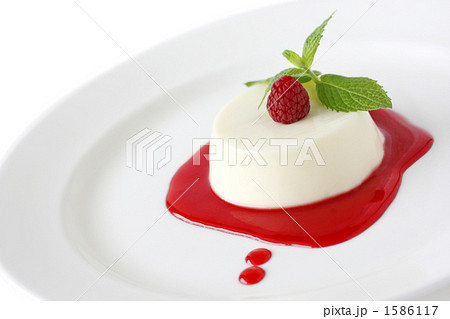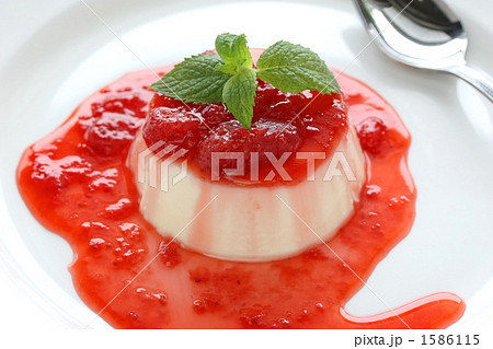 パンナコッタ、苺のソース添え