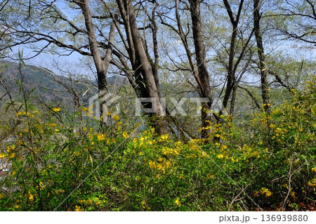 ヤマブキの花咲く雑木林 【相模原市津久井 4月】