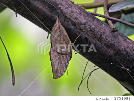 昆虫 暗い林内で羽を広げたコノハチョウ