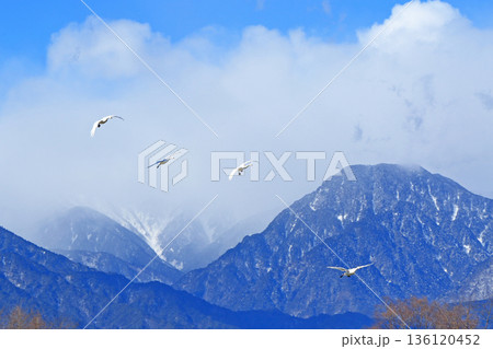 北浦の美しい白鳥たち 群れ 羽ばたき