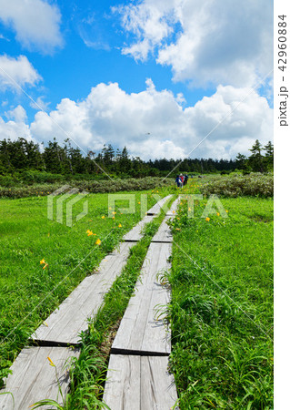 八幡平の木道とニッコウキスゲ 岩手県八幡平市