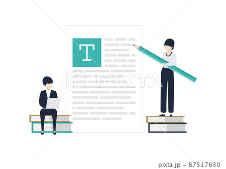 ブログ記事にコンテンツを追加する2人の編集者のイラスト素材
