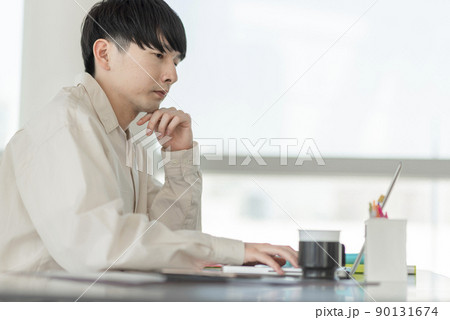 パソコンで仕事をする若い男性