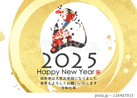 2025年 筆文字のシンプルなシルエット(年賀状素材)