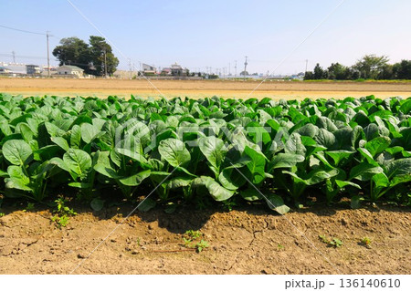 秋の郊外の小松菜畑風景