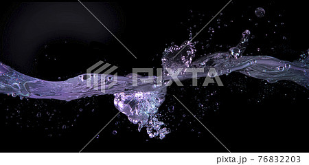 水面に落下した氷。水しぶきの上がった瞬間のテクスチャー 黒背景