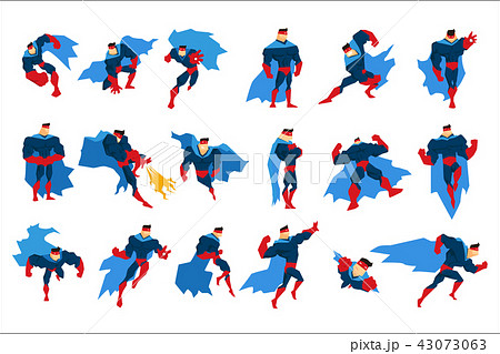 Superhero With Blue Cape In Different Comics Classic Poses Stickers