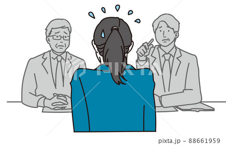 面接で焦るアジア人女性