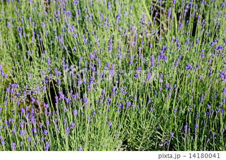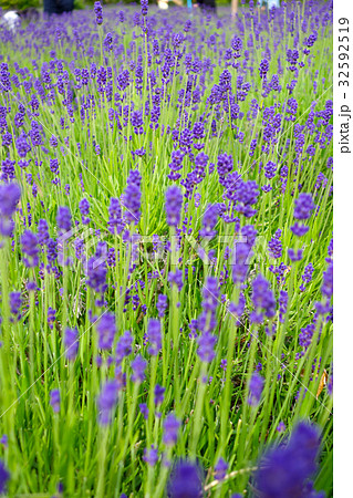 初夏の花壇に咲く鮮やかな紫色のラベンダー