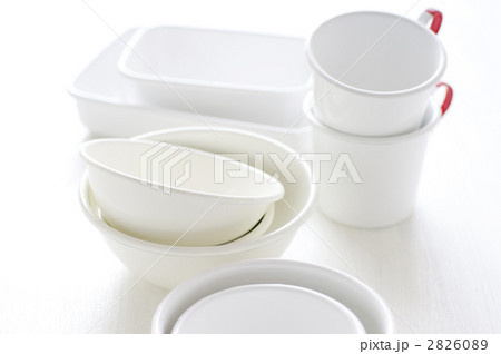 料理道具と食材とキッチン家電 白 横