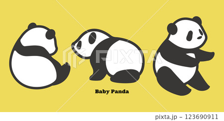 パンダのイラスト素材 シンプル ベクター かわいい 白背景 ベビー