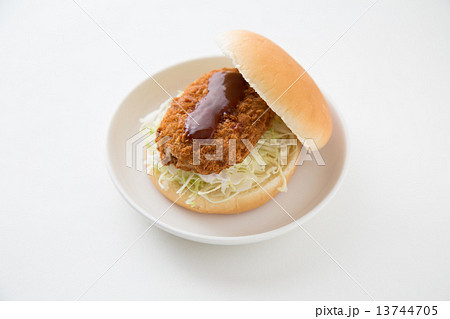 コロッケサンド ソース掛け 白背景