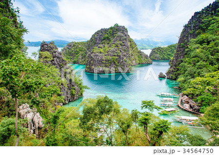 Blue sea and Twin Lagoon surrounded by limestone rocks in Coron, Palawan. Philippines.