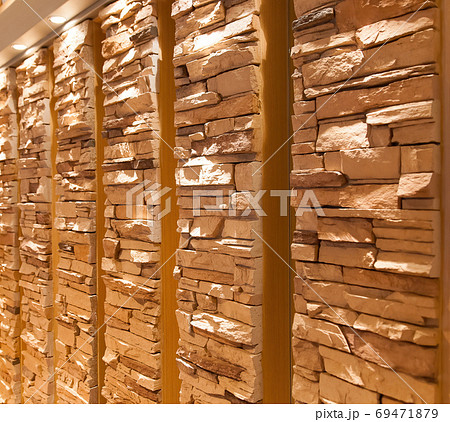 Old building trend showing brickwork, colorful uneven brick background. Changed color scheme.