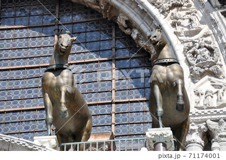 ベネチア 世界遺産サン・マルコ寺院ファッサードの青銅の馬