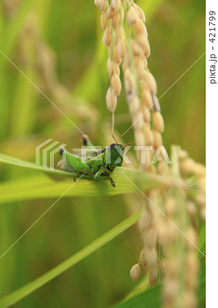 稲の葉を食べるイナゴ