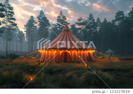 Circus Tent Illuminated With Fairy Lights Generative AI