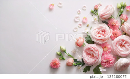 母の日 ペールピンクのばらのお花の背景 俯瞰