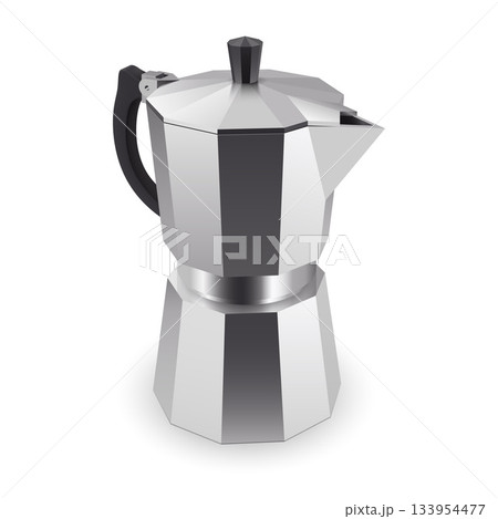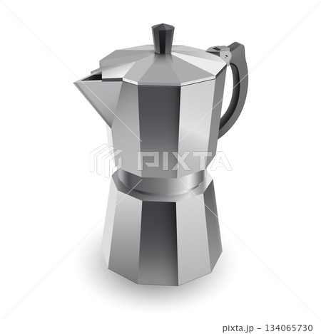 Moka Pot sticker illustration. Coffeemaker, pot, houseflower, handle, steel. Editable vector graphic design.