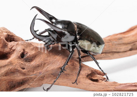 コーカサスオオカブトの樹皮の上で 白バック