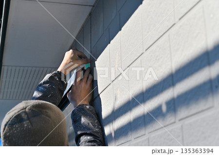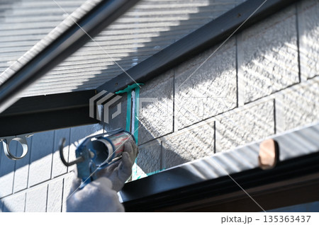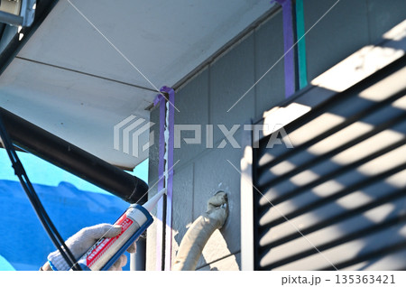 シーリング作業をする作業員 職人のシーリング作業