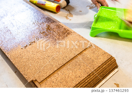 Surface is presenting continuous granular corkboard texture in flat design with orange-brown grains